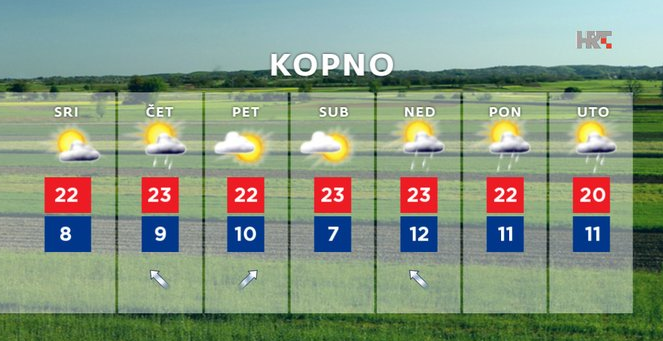 Malo niža temperatura, ali i dalje iznadprosječno visoka za ovo doba godine bit će u središnjoj Hrvatskoj, gdje će biti oblačnije nego na istoku, uz suha i sunčana razdoblja osobito u prvom dijelu dana. Poslijepodne će kiša biti sve češća, a navečer ponegdje vjerojatno i izraženija.