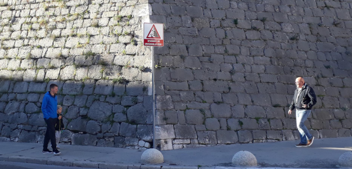 Više ne smijete hodati ispod bedema Cornaro. Ako želite, to radite jedino na vlastitu odgovornost. Naime, komunalci su oko ostataka baroknog bedema postavili znakove koji upozoravaju: “Opasnost od urušavanja zida!”