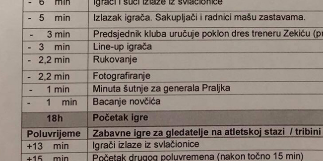 Osijek i Hajduk su željeli prije utakmice minutom šutnje odati počast generalu Slobodanu Praljku, ali je HNS to zaustavio. Naime, u protokolu je već bilo zapisano da ide minuta šutnje, a onda je delegat utakmice Zoran Pandža nakon razgovora s Josipom Breznim to stopirao. Razlog je navodno taj što su se plašili kako bi UEFA reagirala.
