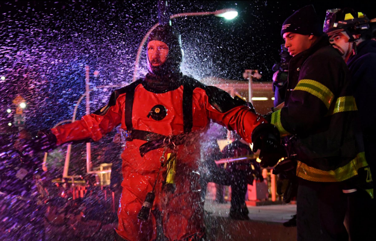 Savezna zrakoplovna uprava priopćila je da je oko 19 sati u vodi blizu sjevernog kraja otoka Roosevelta, okrenut prema gore, završio Eurocopter AS350. Američka obalna straža objavila je da je u helikopteru bilo šest osoba. Na mjestu nesreće su i policija te vatrogasci.