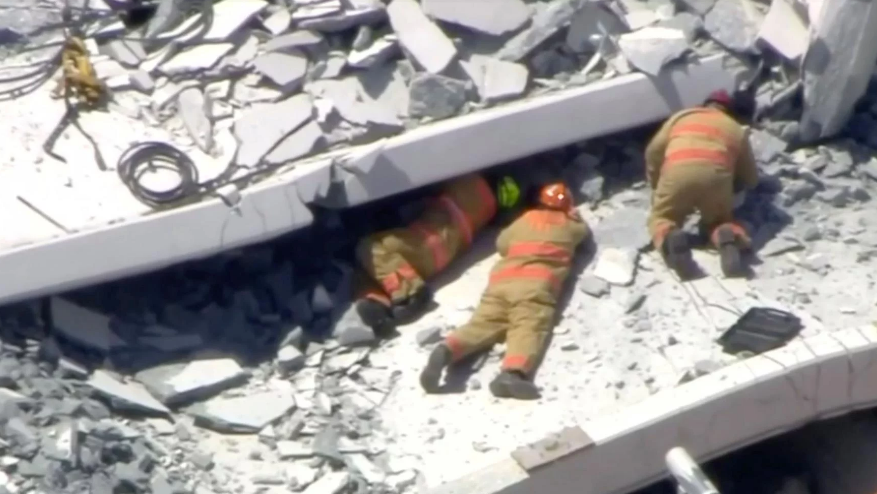 Spasilačke ekipe koristile su se psima tragačima kako bi u zgnječenim vozilima pronašli preživjele osobe u gomili betona i svinutog metala koji su pali na vozila na jednoj od najprometnijih cesta južne Floride.