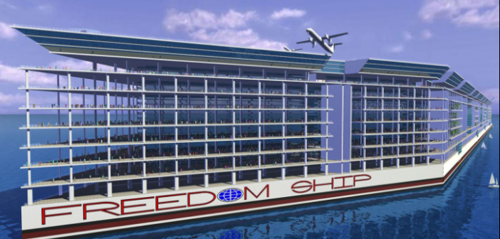 Ako se plan američke tvrtke Freedom Ship International uspješno realizira, a vjeruje se da hoće, dovoljno bogati ljudi imat će prigodu nekoliko godina ili desetljeća, već prema afinitetu, živjeti daleko od kopna, zagađenja, gradske vreve i stresa – na plovećem gradu vrijednom 10 milijardi dolara. Freedom Ship, kako bi se grad zvao, nudio bi sve potrebne sadržaje za svojih 40.000 stanovnika, uključujući bolnicu, škole, parkove, trgovine, kina, knjižnice, kazališta i druge zabavne sadržaje, pa čak i vlastitu malu zračnu luku.